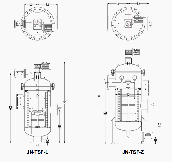 當水從進水口進入過濾器濾筒內(nèi)部,雜質(zhì)被攔截在過濾筒內(nèi)壁, 過濾后的干凈水從出水口流出,當濾筒內(nèi)壁的雜質(zhì)越積越多時, 精密過濾器進出口的壓差達到預(yù)設(shè)值、達到清洗時間或手動預(yù) 制時,過濾器將開始自清洗過程,整個自清洗過程包含兩個步 驟:打開位于過濾器上的自動排污閥;電機帶動精密過濾器濾 網(wǎng)內(nèi)的清洗刷,被濾網(wǎng)所攔截下來的雜質(zhì)從排污閥排出,清洗 時系統(tǒng)不斷流,精密過濾器的整個運行過程由隨機配備的一個 智能控制箱來控制。控制方式可選壓差、時間、手動及 PLC 制。