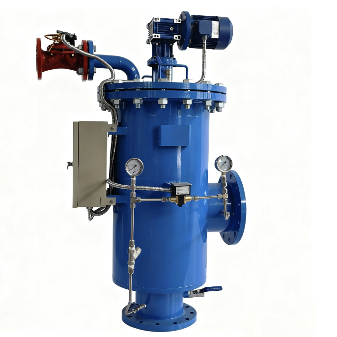 當水從進水口進入過濾器濾筒內(nèi)部,雜質(zhì)被攔截在過濾筒內(nèi)壁,過濾后的干凈水從出水口流出,當濾筒內(nèi)壁的雜質(zhì)越積越多時,精密過濾器進出口的壓差達到預(yù)設(shè)值、達到清洗時間或手動預(yù)制時,過濾器將開始自清洗過程,整個自清洗過程包含兩個步驟:打開位于過濾器上的自動排污閥;電機帶動精密過濾器濾網(wǎng)內(nèi)的清洗刷,被濾網(wǎng)所攔截下來的雜質(zhì)從排污閥排出,清洗時系統(tǒng)不斷流,精密過濾器的整個運行過程由隨機配備的...